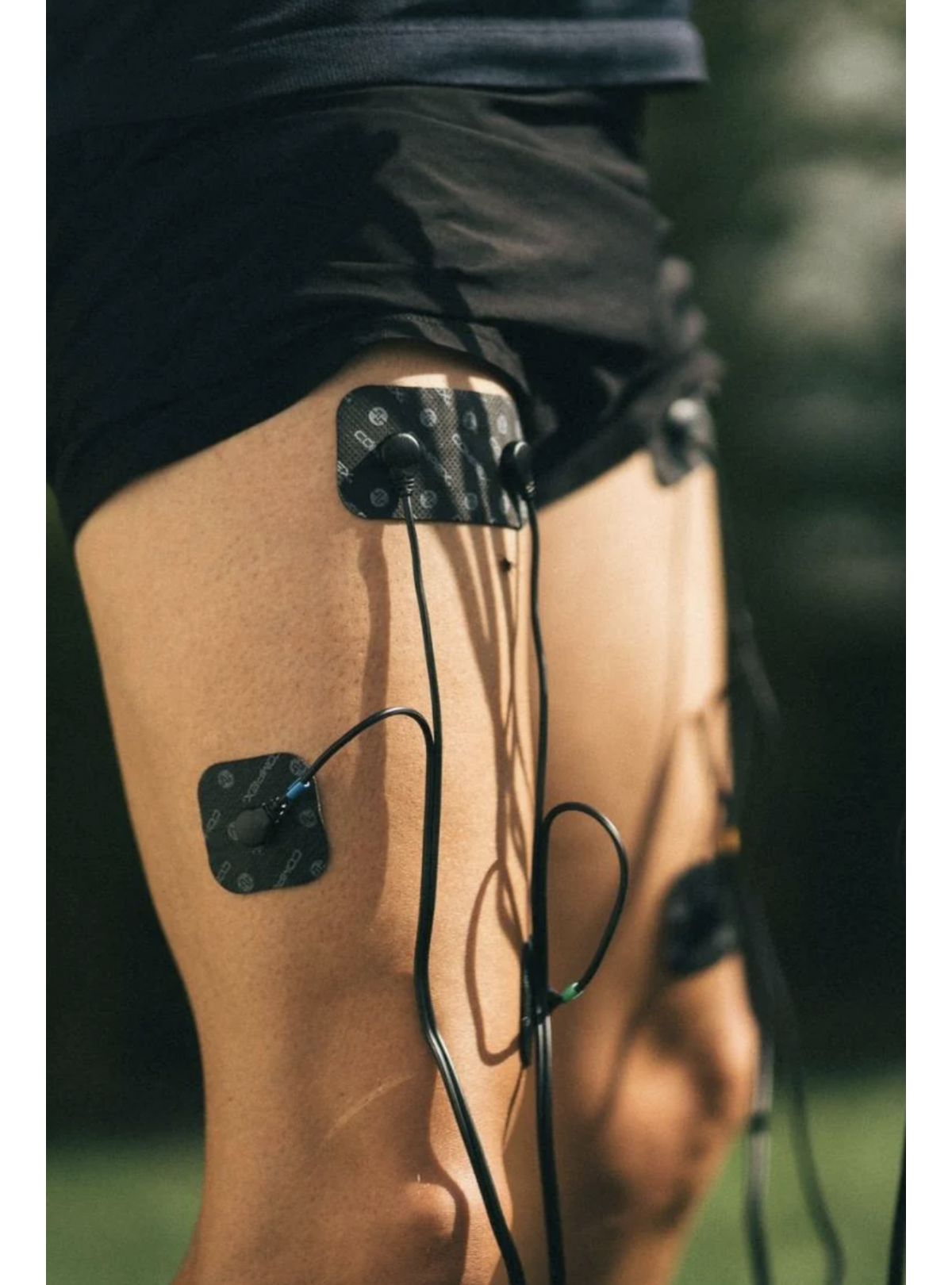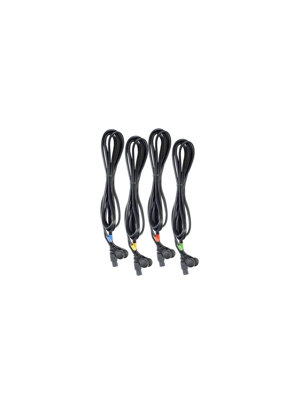 El pack incluye cuatro cables diferenciados por color rojo, amarillo, verde y azul, facilitando la identificación de los canales y una correcta organización durante el tratamiento o entrenamiento.