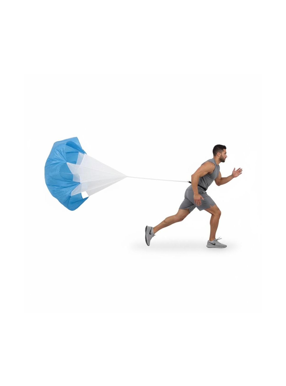 Es perfectamente apto para entrenar en solitario, pero también debes saber que si entrenas en pareja, tu compañero puede lanzar el paracaídas al aire para conseguir mas rápidamente la resistencia al aire. Pero de todas maneras, deberías coger velocidad rápidamente para que el paracaídas se expanda lo más rápido posible.