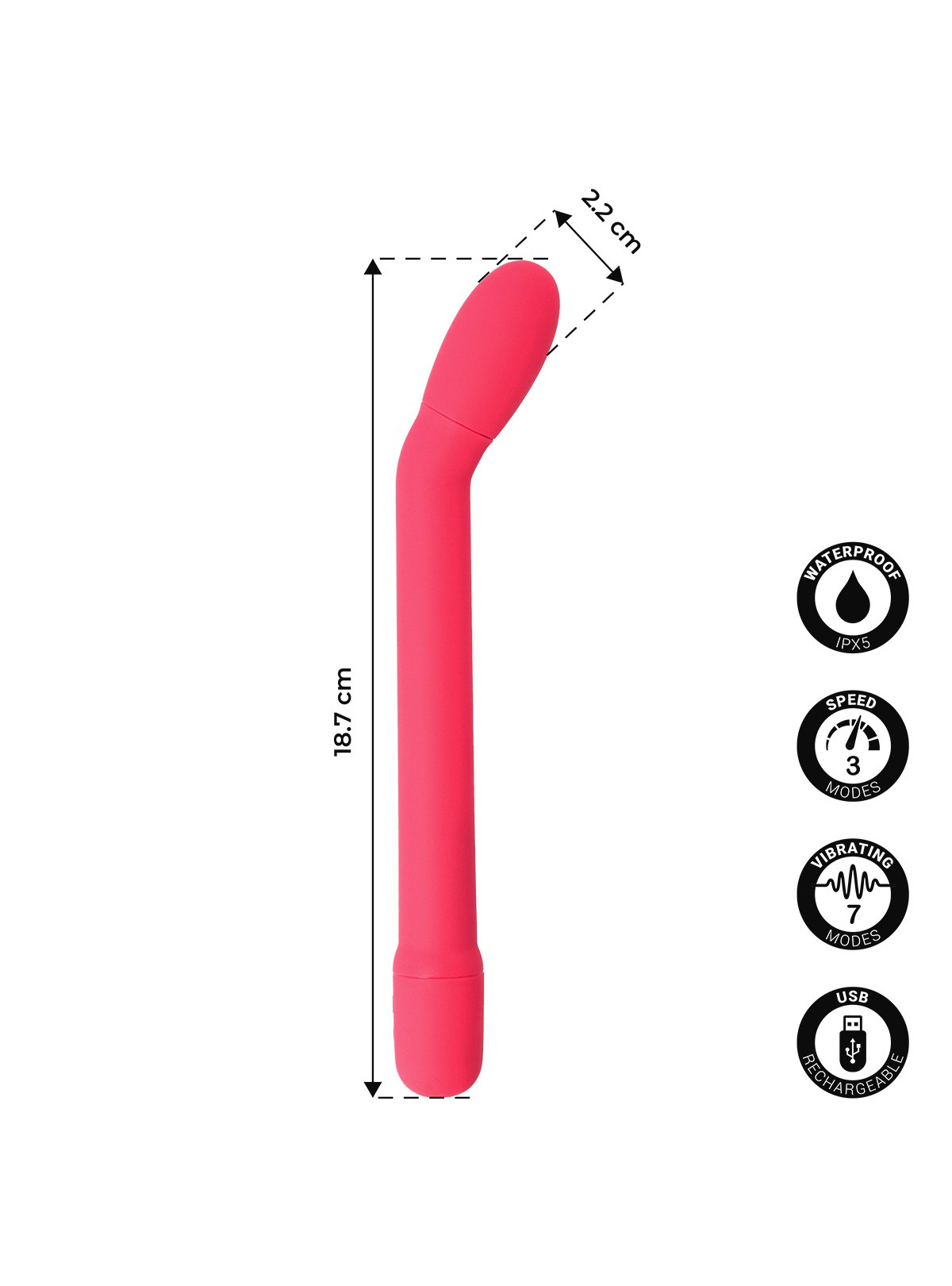 Masajeador vibratorio recargable diseñado como herramienta de apoyo en la rehabilitación del suelo pélvico. Su eje liso y recto con punta redondeada y curvada permite una estimulación focalizada y precisa de la musculatura perineal, facilitando el tratamiento de distintas disfunciones como hipertonías, cicatrices o dolor asociado. Incorpora diferentes modos de vibración, es fácil de manejar mediante un único botón y está fabricado con materiales seguros para el cuerpo. Recomendado el uso de lubricante a base de agua.