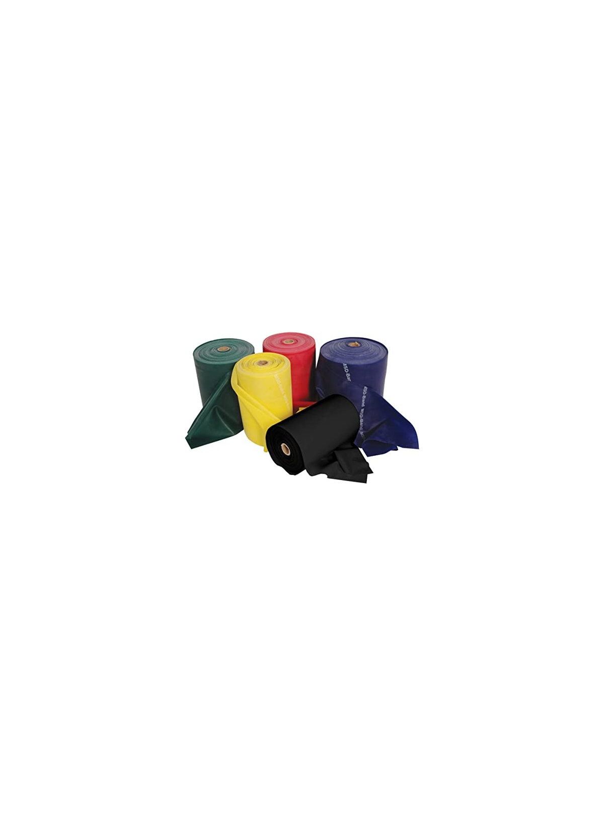 Banda elástica sin látex en rollo de 45 metros, indicada para ejercicios de fortalecimiento, rehabilitación y entrenamiento funcional.