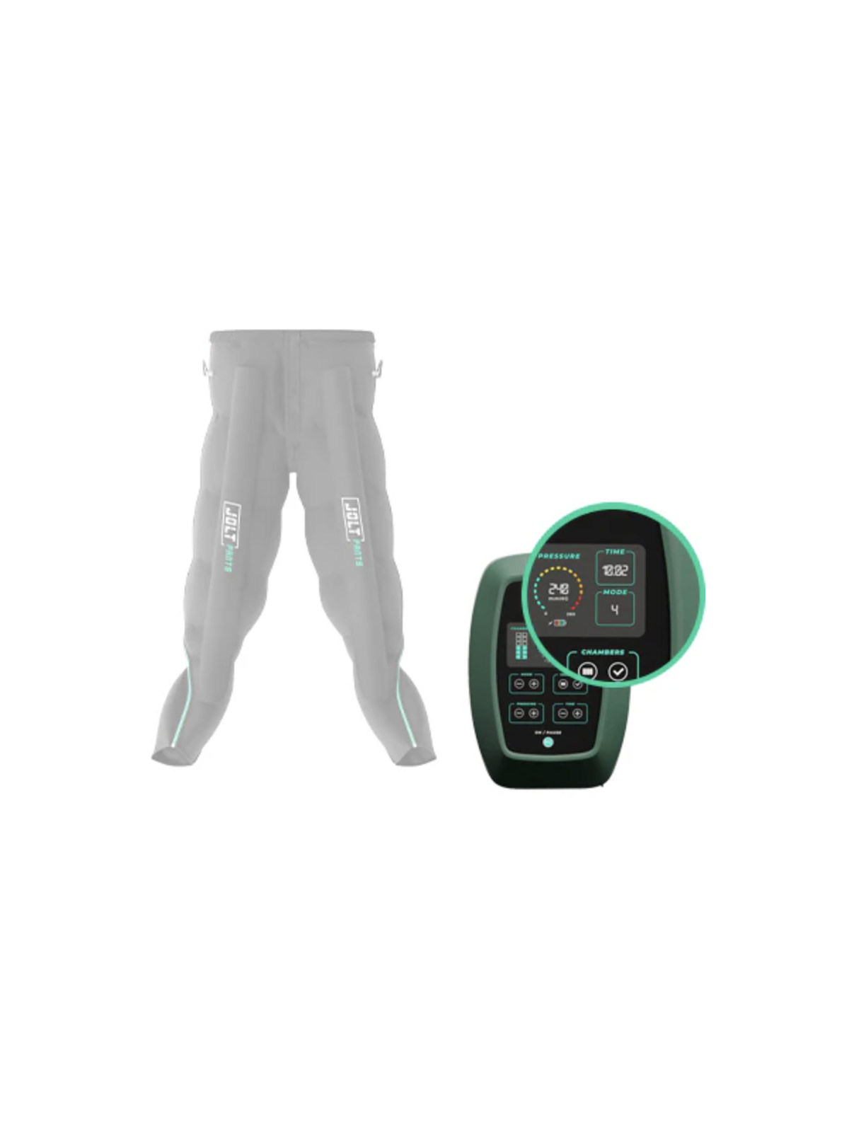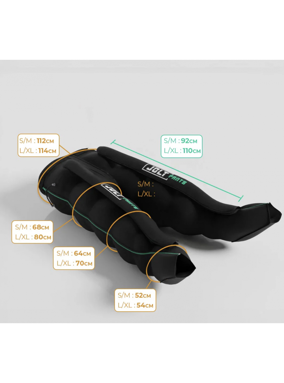 El equipo de presoterapia Jolt™ Pants ha sido diseñado para deportistas que buscan recuperar sus piernas con rapidez, reducir la sensación de carga muscular y optimizar el rendimiento después de entrenamientos exigentes. Su pantalón compresivo de 6 cámaras emplea tecnología Soft Flow, que garantiza una presión continua y homogénea de 360°, favoreciendo una evacuación vascular completa desde el pie hasta los glúteos. Esta compresión secuencial acelera la eliminación de lactato, reduce el estrés metabólico post ejercicio y mejora la movilidad tras sesiones intensas de carrera, fuerza o resistencia.