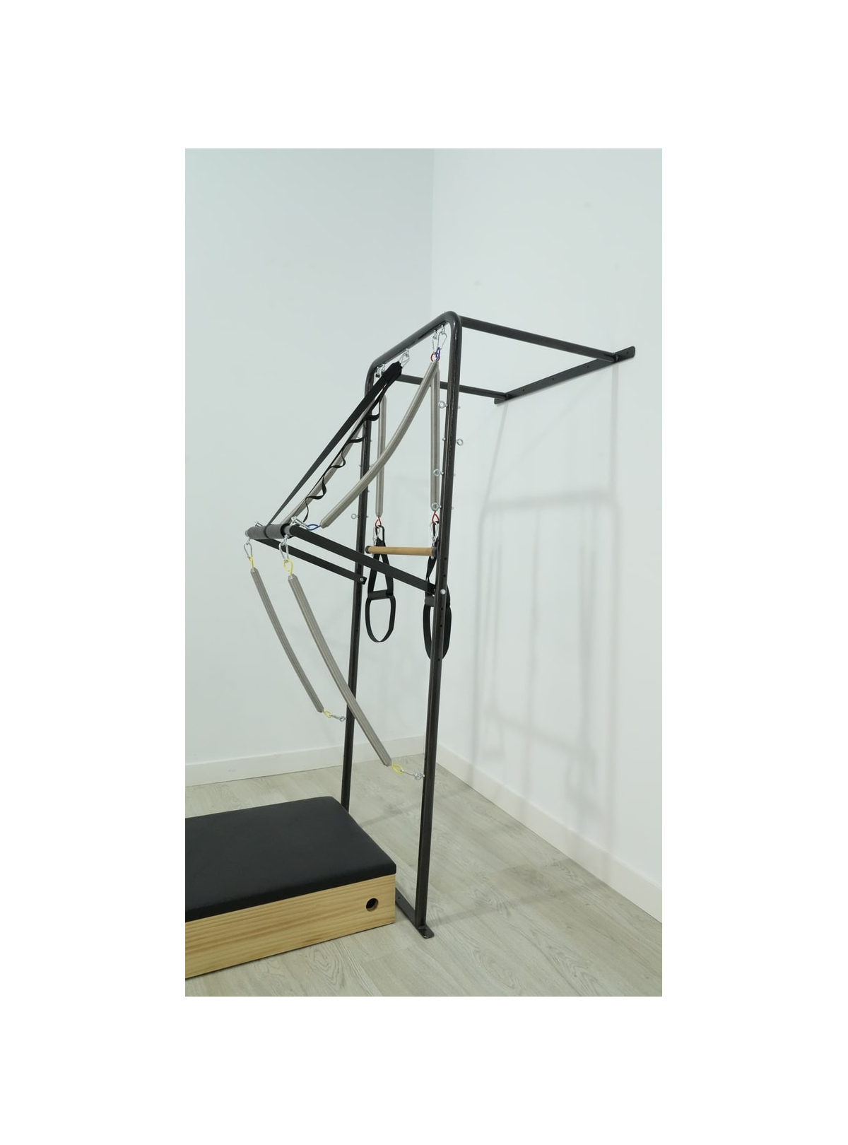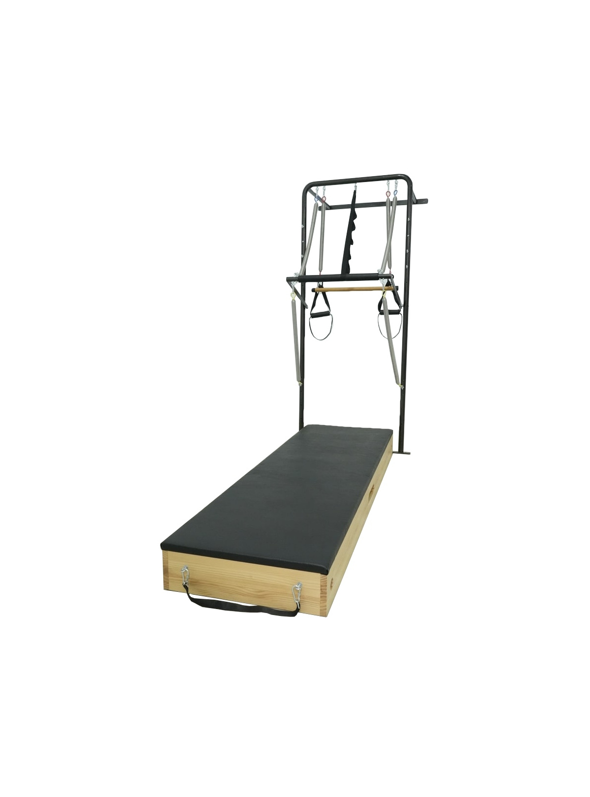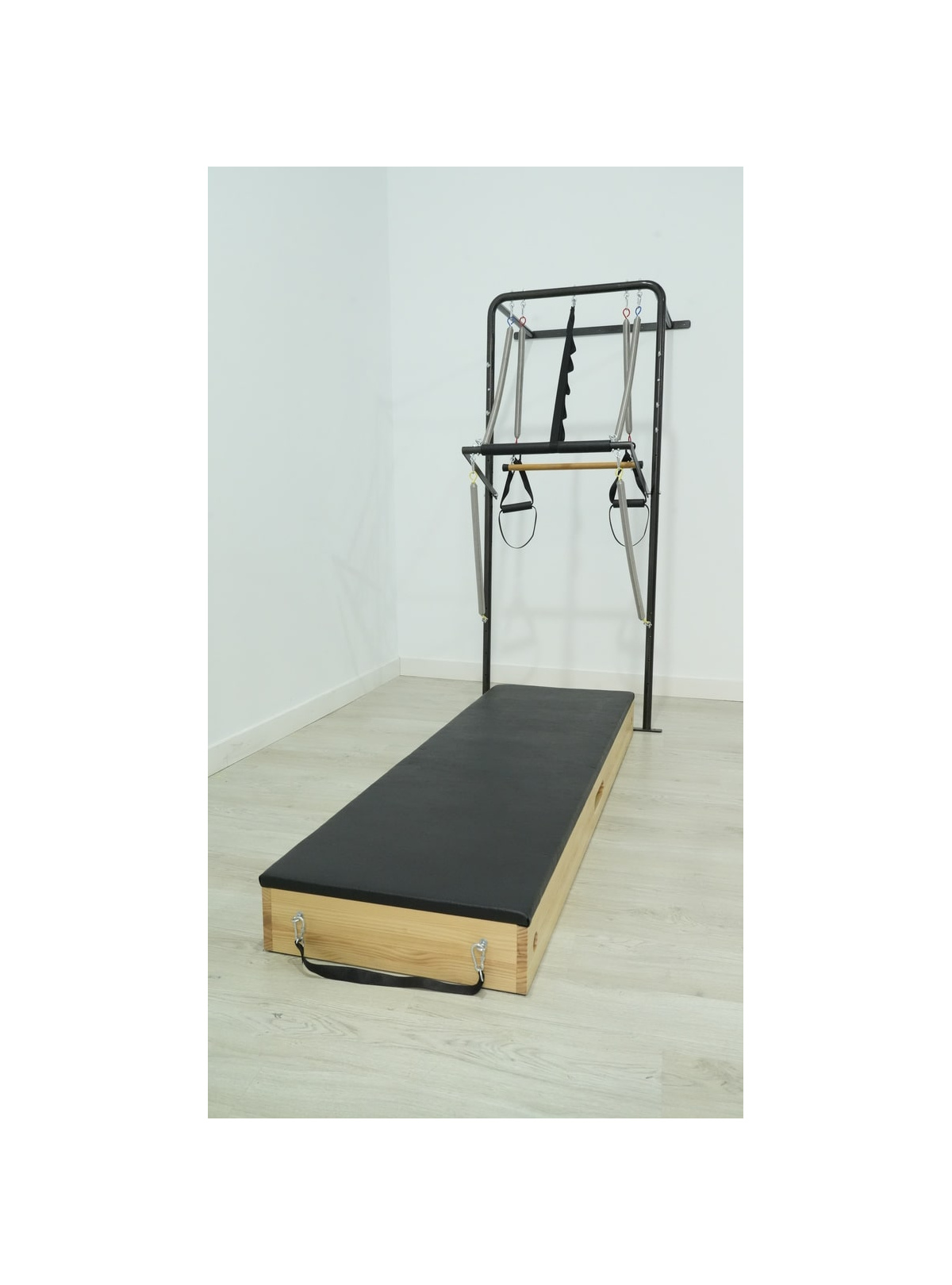 El Cadillac de Pilates combina en un solo equipo las funciones de reformer, mat y torre Cadillac. Fabricado en madera maciza de roble y acero inoxidable, ofrece estabilidad, durabilidad y un entrenamiento profesional completo.