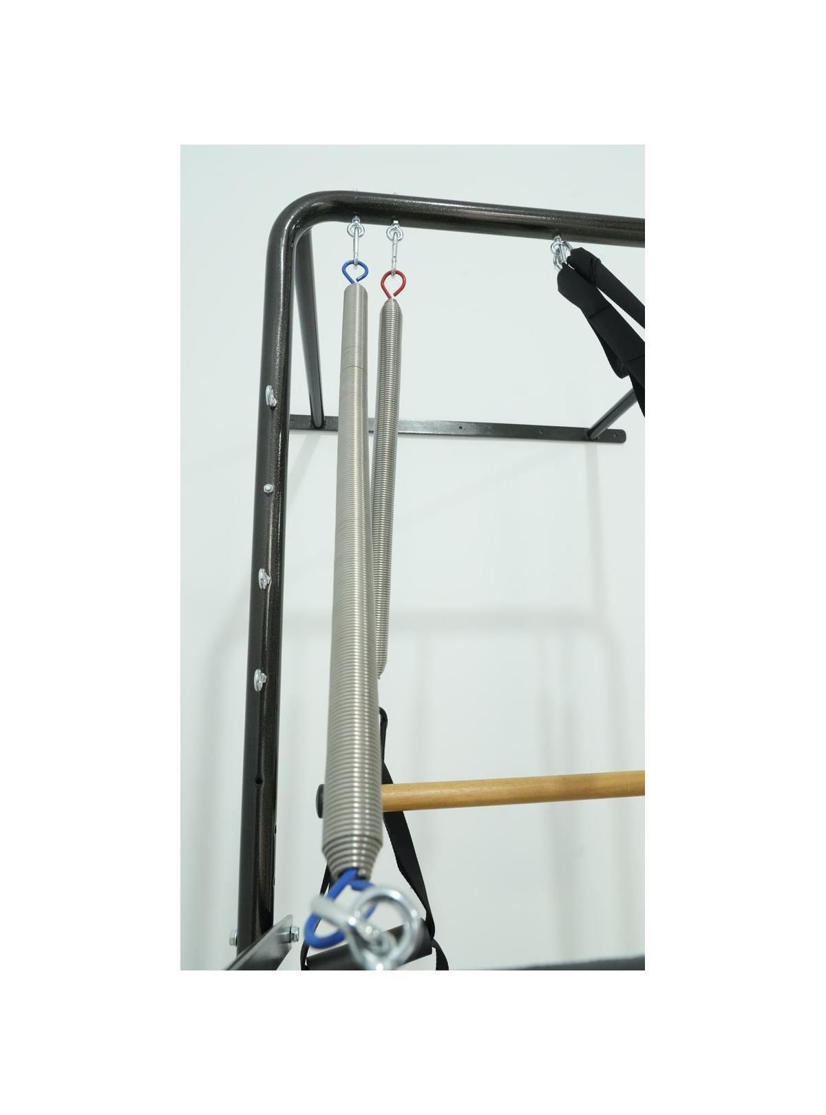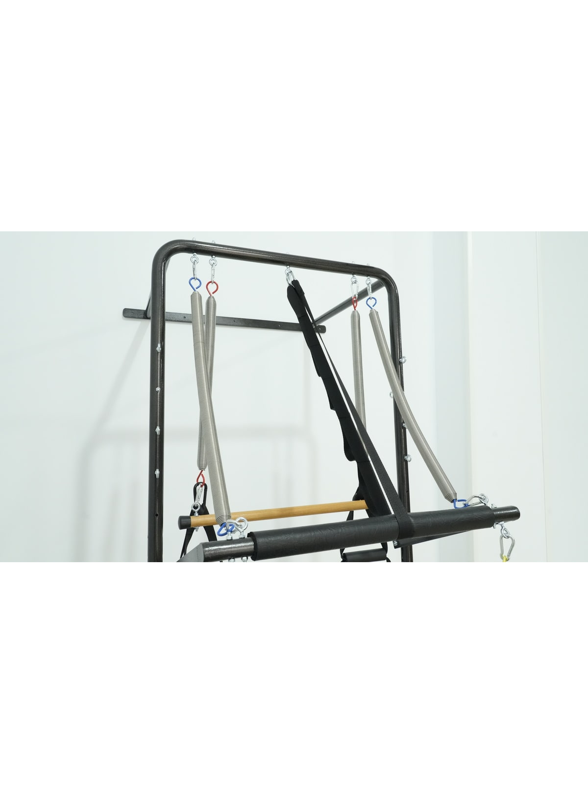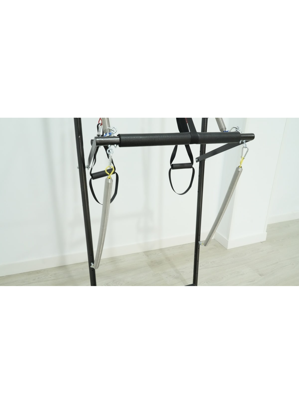 El Cadillac de Pilates combina en un solo equipo las funciones de reformer, mat y torre Cadillac. Fabricado en madera maciza de roble y acero inoxidable, ofrece estabilidad, durabilidad y un entrenamiento profesional completo.