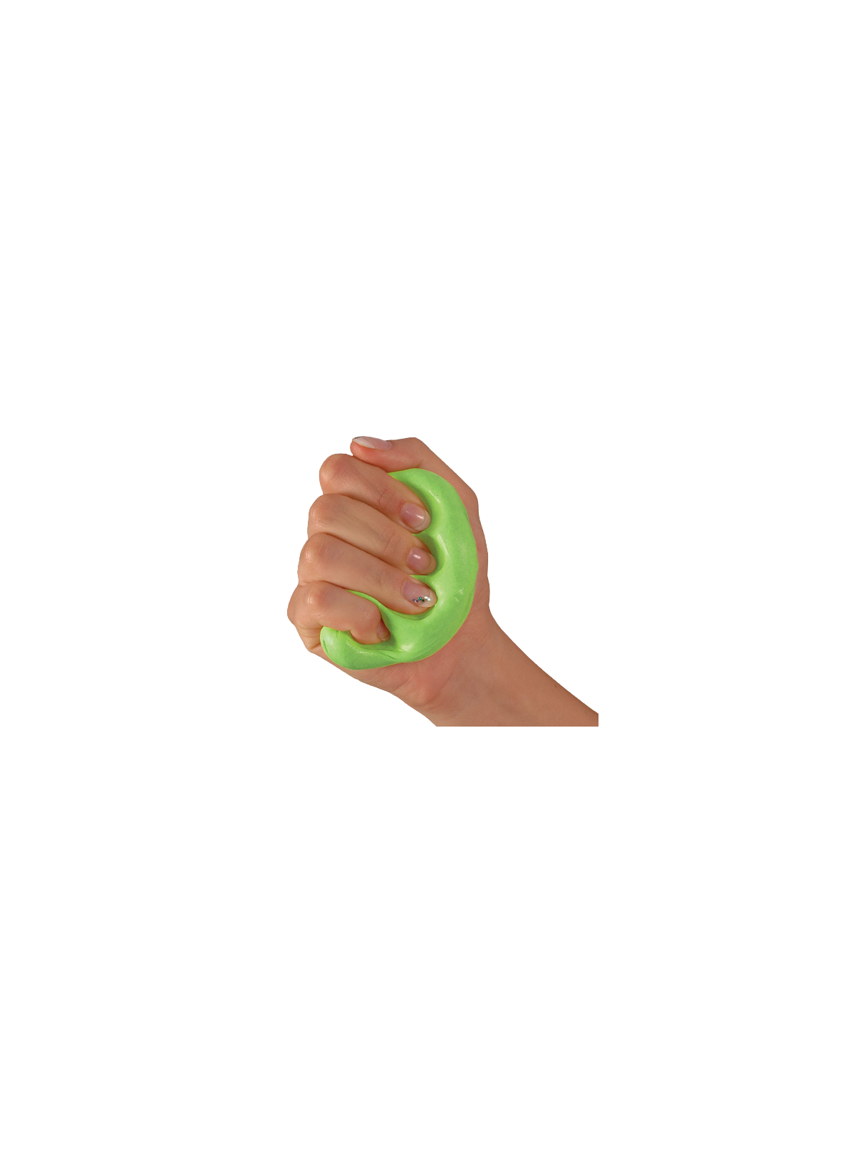 Masilla terapéutica de resistencia fuerte en color verde, indicada para el fortalecimiento de la mano y los dedos. Formato compacto de 57 g, ideal para trabajo específico y transporte sencillo.