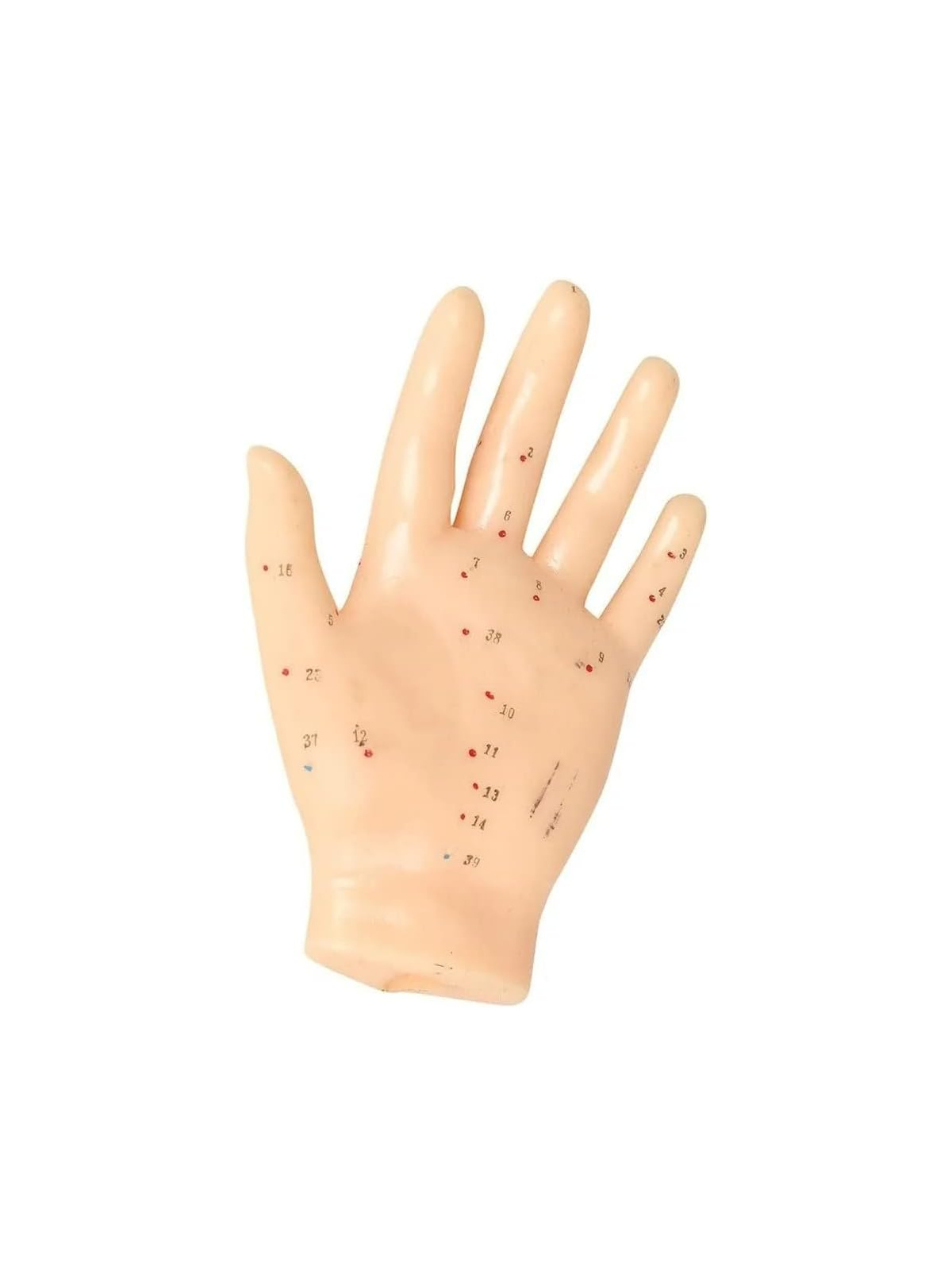 De diseño limpio y claro, con los puntos numerados y marcados en color, la mano de caucho para acupuntura es una herramienta práctica, duradera y accesible, que combina precisión anatómica con utilidad pedagógica.