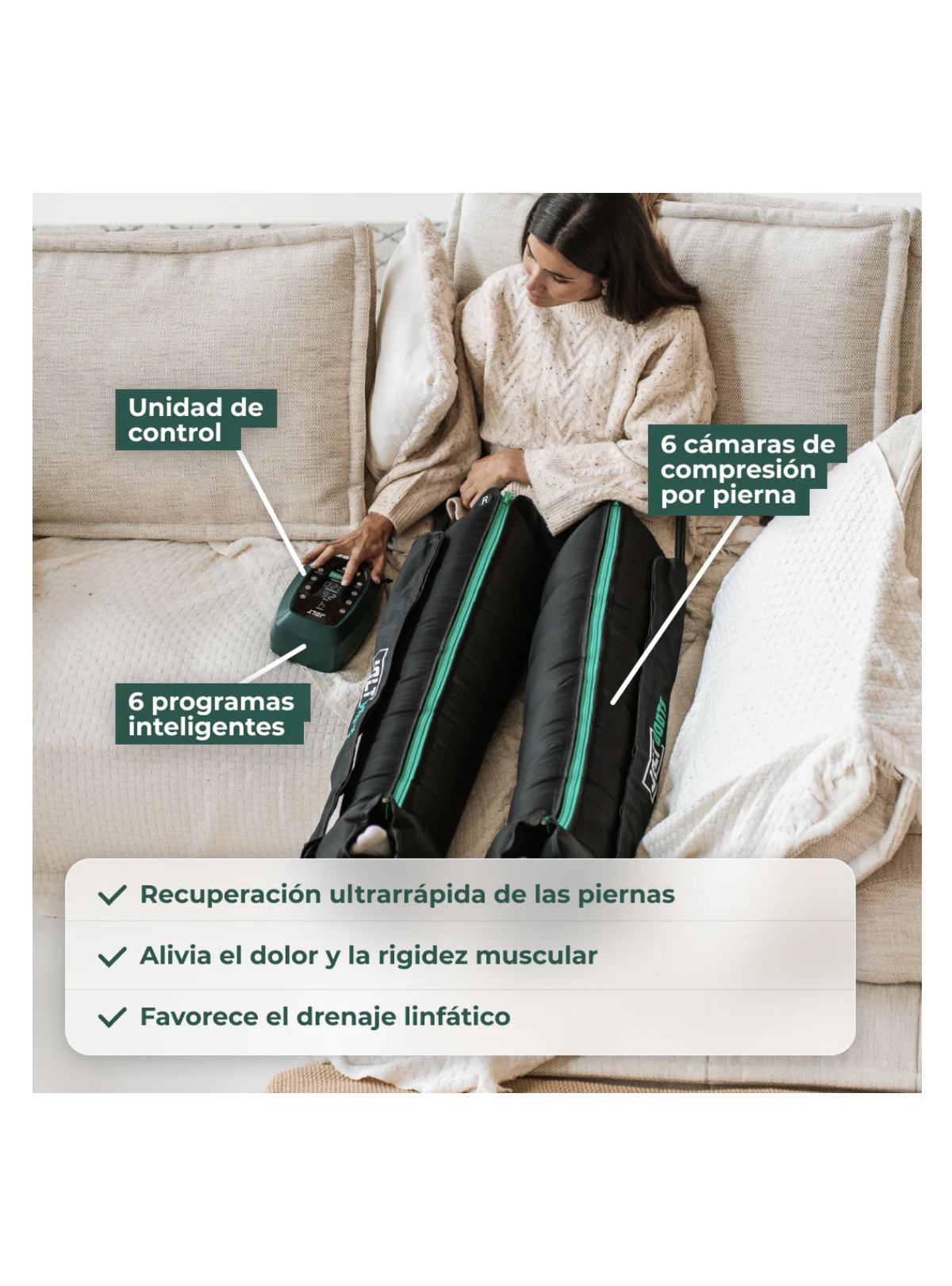 El equipo de presoterapia Jolt™ Pants ofrece una recuperación muscular profesional para deportistas, mediante un pantalón compresivo de 6 cámaras que actúa desde los pies hasta los glúteos con tecnología Soft Flow. Su presión regulable de 30 a 260 mmHg acelera la eliminación del lactato, reduce la fatiga muscular y alivia las piernas cargadas tras el...