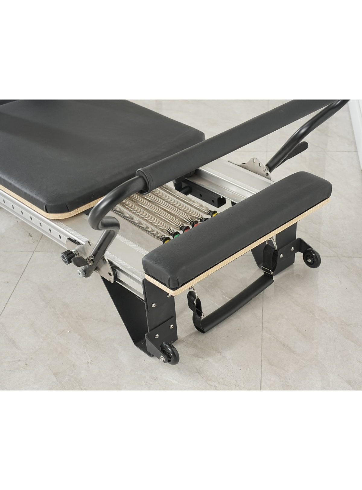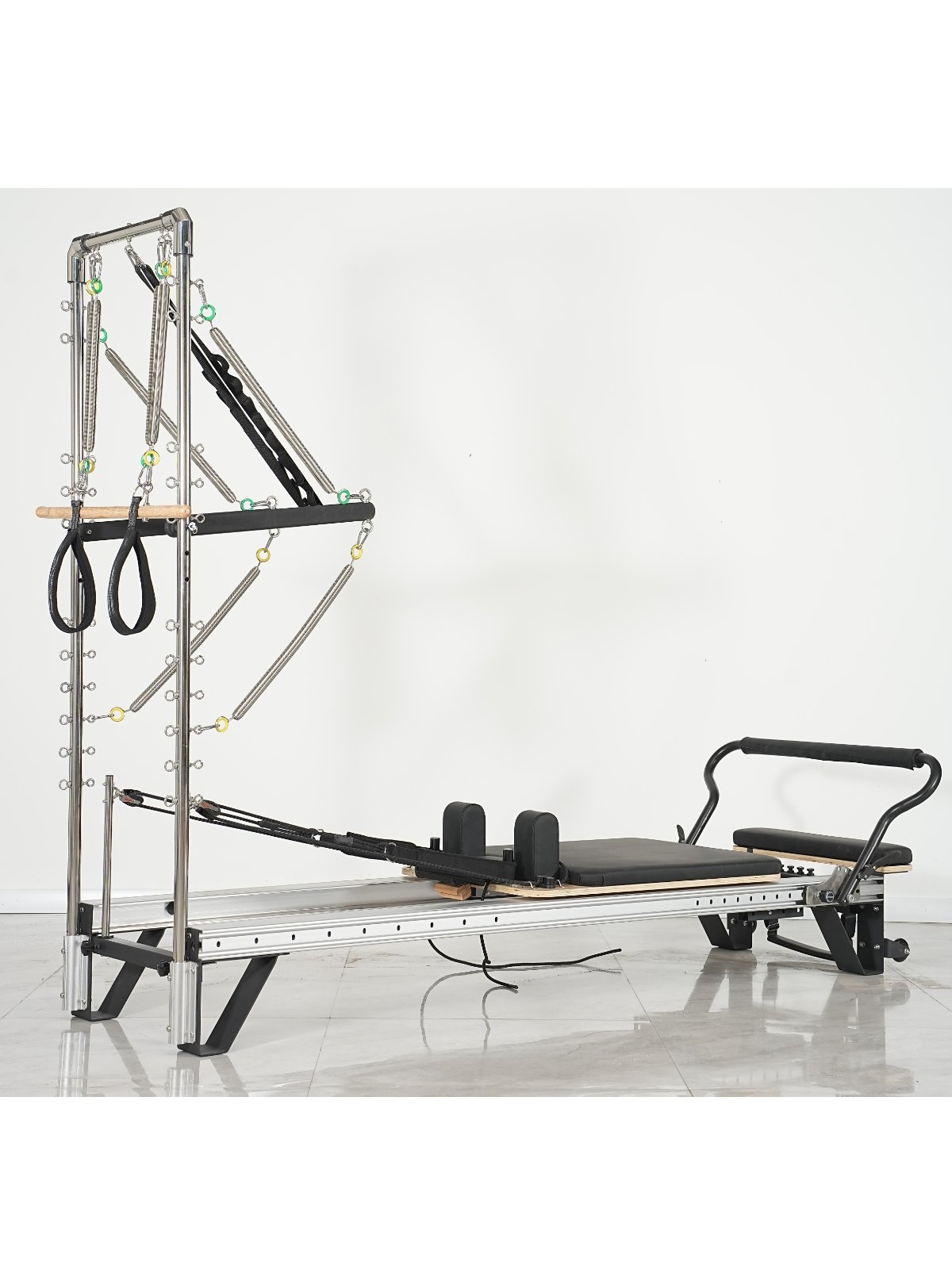 Con su estética moderna, diseño ergonómico y completa dotación de accesorios, el Reformer de Aluminio con Torre se presenta como una opción ideal para estudios profesionales que buscan un equipo sólido, versátil y más ligero que la versión en madera, capaz de ofrecer entrenamientos completos, dinámicos y seguros.