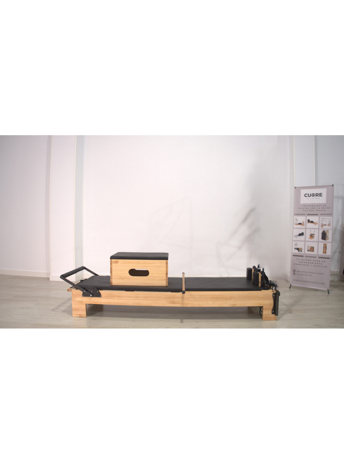 El Reformer Clásico de Madera, fabricado en roble macizo y equipado con accesorios completos, combina estabilidad, durabilidad y confort para un entrenamiento de Pilates profesional sin torre.