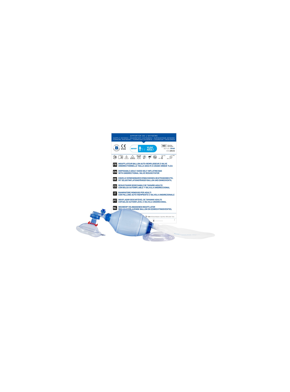 El resucitador BVM desechable para adulto de YLEA es un dispositivo imprescindible para la ventilación manual en situaciones de parada respiratoria o insuficiencia ventilatoria. Su sistema de bolsa autollenable con válvula unidireccional permite una ventilación eficaz, controlada y segura, facilitando su uso en entornos sanitarios, urgencias o primeros auxilios.